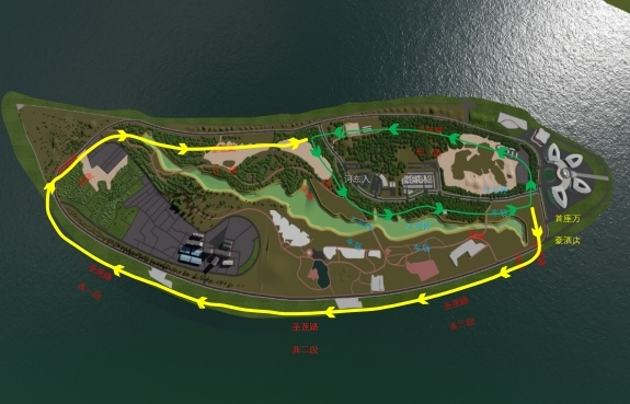 圣莲岛,位于涪江江心,面积约1.47平方公里。岛上具有圣莲音艺术馆、圣莲广场、紫莲渡等景区,并建有度假酒店两座。交通承载能力在节假日中处于超负荷状态。 交通组织设计为:游客车辆行走路径为循环区域一,采用逆时针方式循环。 从河东方向入岛车辆左转,经宝莲路驶入1、2号停车场。 从老城方向入岛车辆左转,经宝莲路驶入3号停车场。